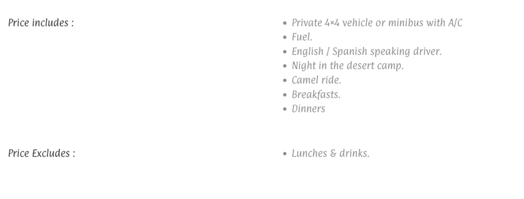 After that we drive along the Ziz river, we stop for a panoramic view of the Ziz valley. Then we drive through the cedars forest and Ifrane to reach Fes. Finally, we drop you off at the airport or your accommodation. End of the tour