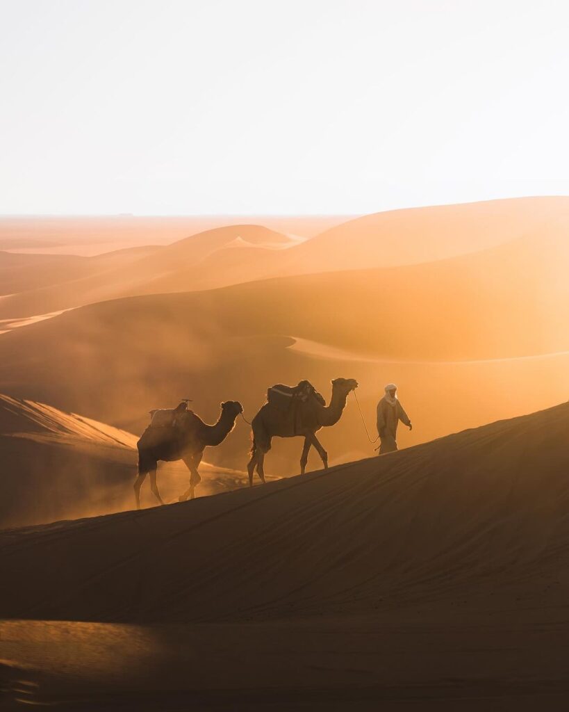 In the afternoon we reach the Sahara desert of Merzouga. Then switch to camels and cross the sandy desert. After that a stop will be made for you to enjoy the magical sunset on top of a high dune. Then continue to the desert camp. Where you can enjoy the Berber drums music while dancing around the campfire, under vast open sky of stars. Dinner and overnight in the camp